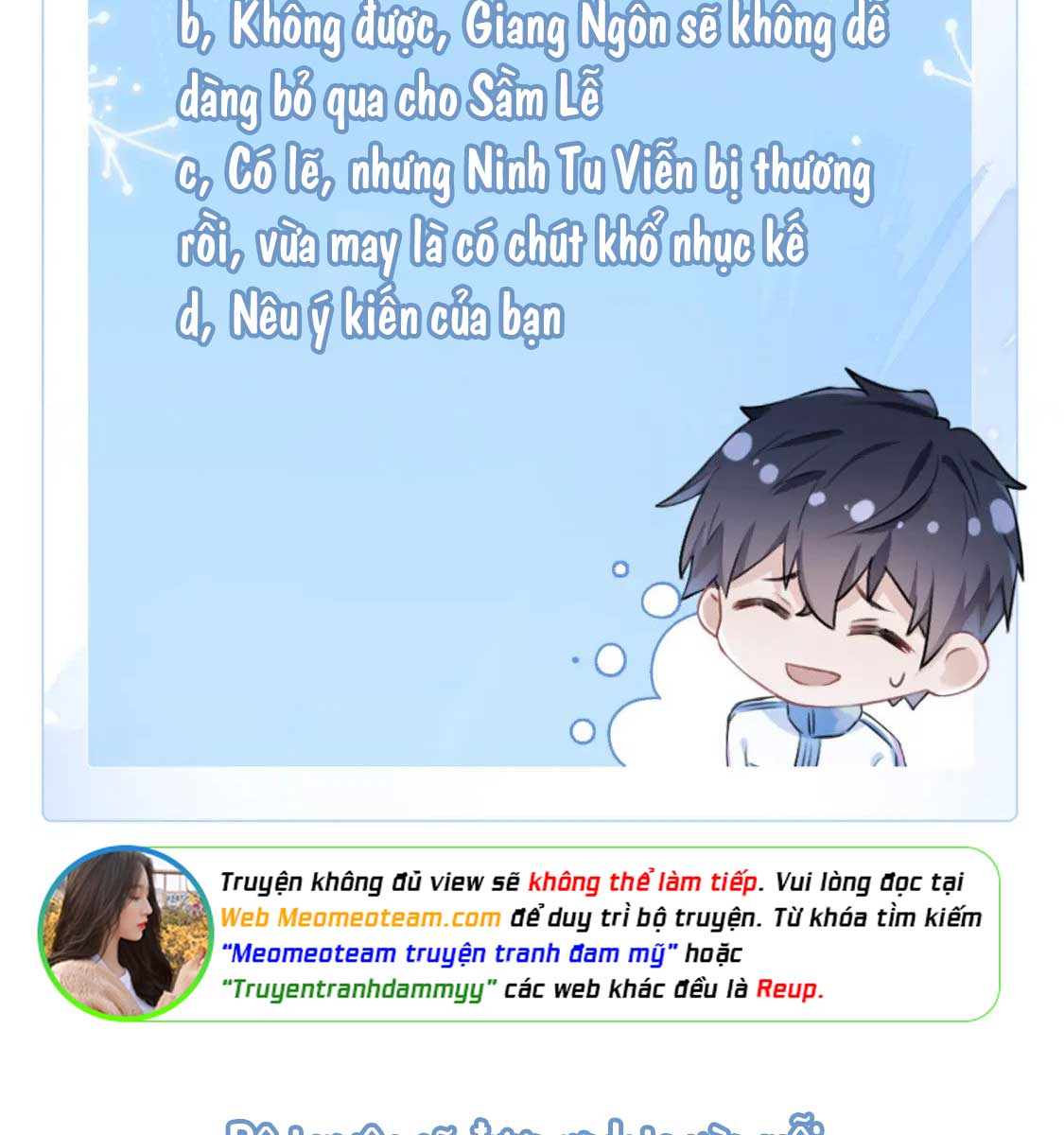 Giờ mày cầm con dao đó đâm chết thg ml kia rồi tự tử là kết thúc đẹp nhất trên đời rồi đấy. Chắc t phải đi xem trước chap gần nhất để biết có cắt đc thg ml này ra khỏi cuộc đời con t k quá, chứ phải mà kiểu sau này lại tha thứ rồi đến với nhau là t nuốt k trôi rồi